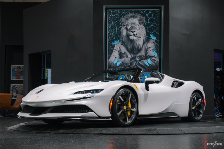 Used 2022 Ferrari SF90 Spider $831K MSRP, Tailor Made, Factory Matte White Paint, Blue Alcantara Interior